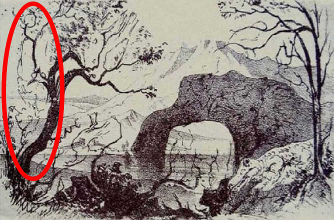 Az elrejtett ember a kép bal oldalán egy fának támaszkodó körvonalként látható. Úgy tűnik, mintha pipázna.