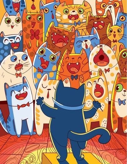 Valahol a vidáman éneklő macskák között elbújik egy hal. Ha megtalálod az elrejtett halat, akkor a figyelmes emberek felső 3%-ába tartozol.