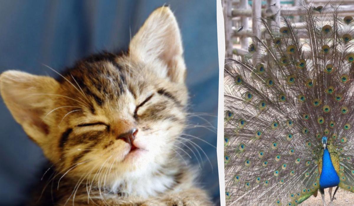 A cica a páva farka mögött volt / kollázs az Moje fotójáról