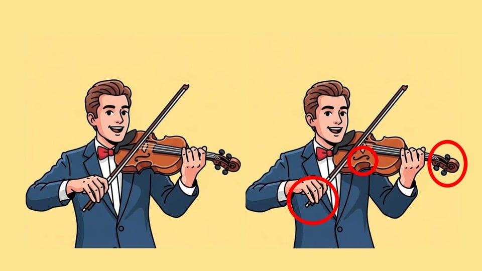 Készen állsz egy új kihívásra? Nézd meg alaposan a két képet a hegedűssel. Első pillantásra egyformának tűnnek, de ez csak illúzió – három apró különbség rejtőzik közöttük. Képes leszel mindet észrevenni 37 másodperc alatt? Itt az ideje, hogy próbára tedd a figyelmedet!