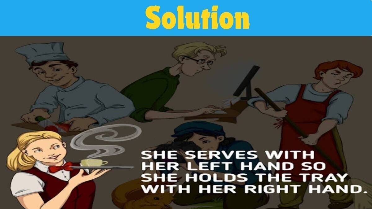 Balkezes a pincérnő, aki a kezében tartja a tálcát. A lány a jobb kezében tartja a kávés tálcát, ami azt jelenti, hogy bal kézzel szolgálja ki az asztalt.
