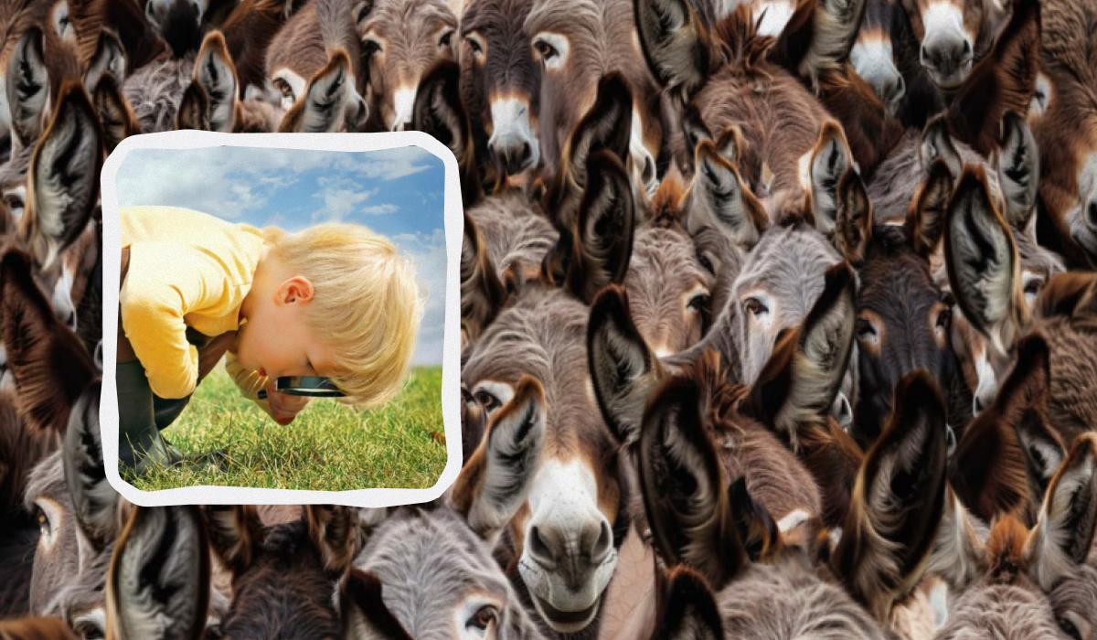 A sikeres kereséshez emlékezni kell arra, hogyan néznek ki a kormányok. Hasonlítsuk össze őket a szamarakkal, majd ennek ismeretében keressük meg az állatot.