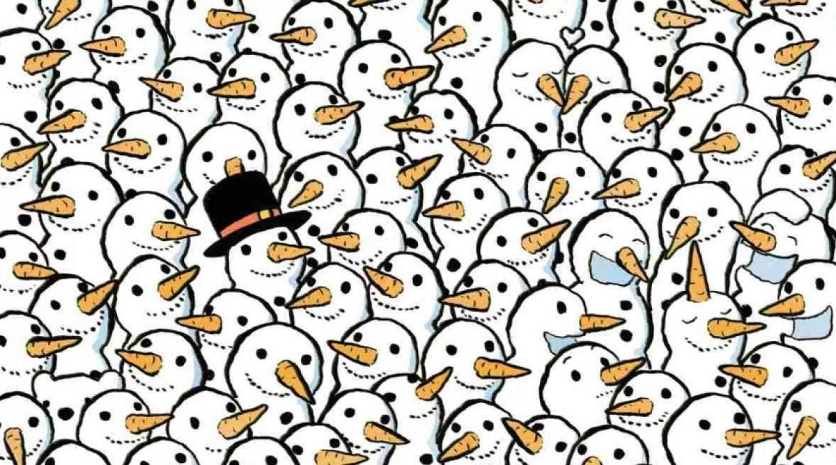 Oldj meg egy furcsa és érdekes optikai csalódást – a képen sok hóember van, közöttük egy medve van elrejtve, amit nehéz lesz megtalálni.