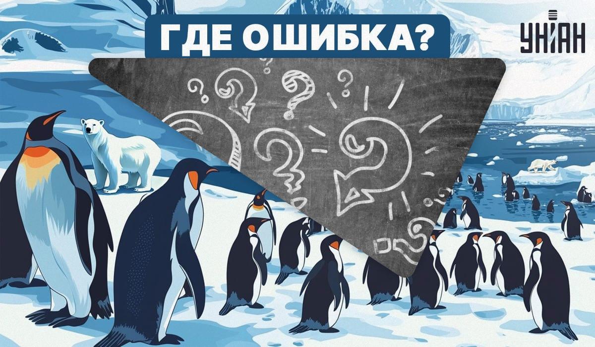 A hiba az, hogy a pingvinek és a jegesmedvék a Föld különböző pólusain élnek. A pingvinek a déli póluson, az Antarktiszon élnek, a jegesmedvék pedig az északi póluson, az Északi-sarkvidéken. És nekik nem szabadna találkozniuk.