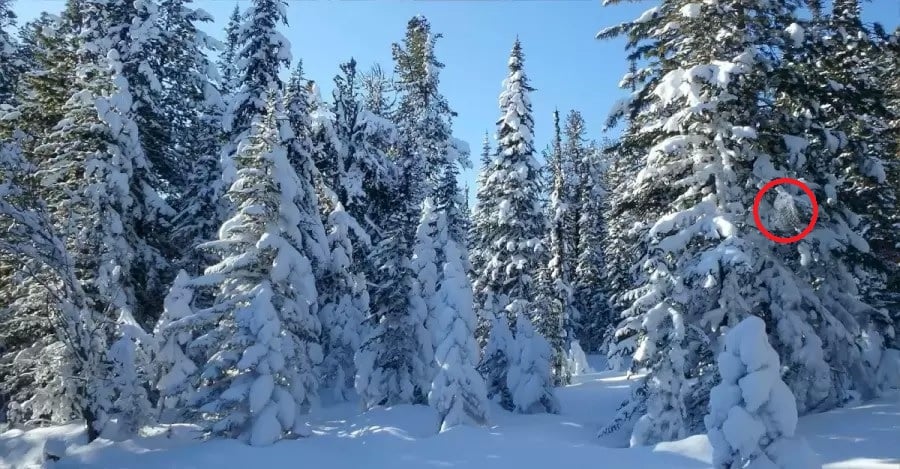 Egy bagoly elrejtőzött a havas téli erdőben, és olyan jól álcázta magát, hogy meg kell dolgoznod, hogy meglásd.