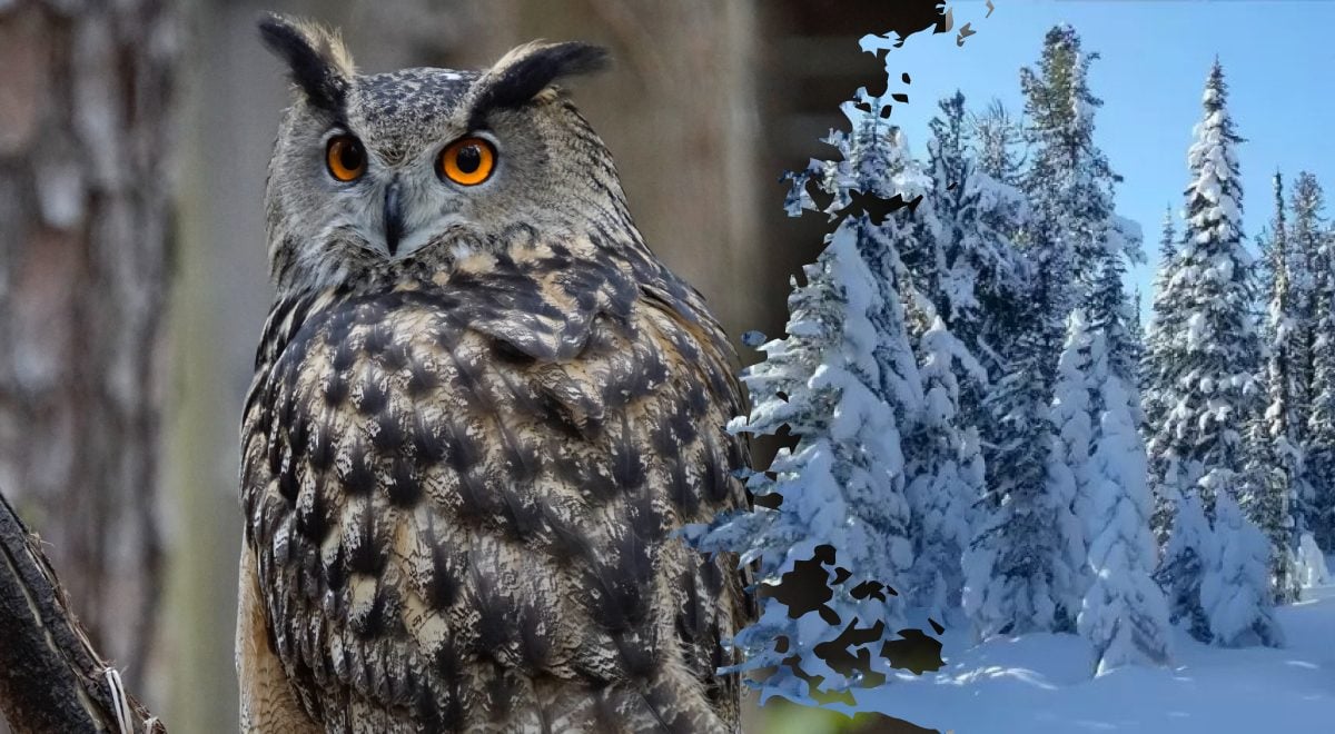 16 másodperc alatt kell megtalálni egy baglyot az erdőben / kollázs: Glavred, fotó: fresherslive, unsplash.com