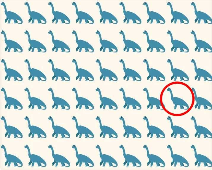Csak a legélesebb szeműek lesznek képesek gyorsan megtalálni azt a dinoszauruszt, amely egy tulajdonságában különbözik az összes többitől.