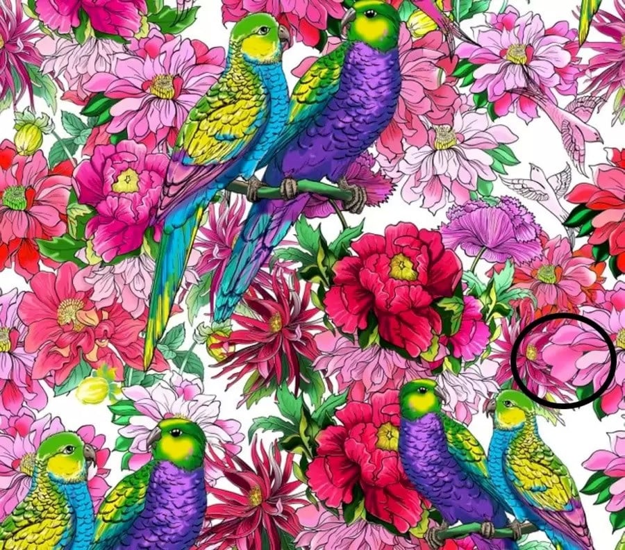 Ha nem találod a szívet a képen, adunk egy kis tippet – figyelj a rózsaszín virágra a kép jobb szélén. Észreveszel ott valami furcsát?