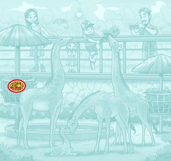Ahogy a JagranJosh elmeséli, az illúzió egy állatkertet ábrázol. Egy férfi zsiráfok képeit kattintgatja. A nő és a gyerekek ámulva nézik az állatokat. A fiú növényekkel eteti a zsiráfot. Egy majom is ügyesen elbújik valahol a képen. Próbáld meg minél hamarabb megtalálni a majmot, mert csak 9 másodperced van a feladat elvégzésére.