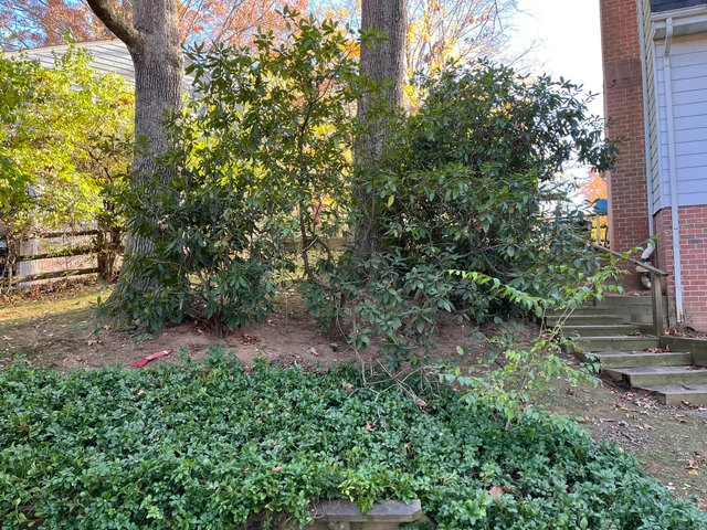 A kutya a fa tövében látható a bal oldalon, ahol a fejének egy része is látható.