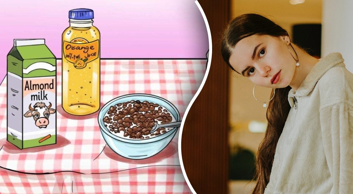 A képen egy tál tejbe áztatott gabonapelyhet, egy csábító csokis kekszet, egy üveg frissítő narancslevet és egy doboz egészséges mandulatejet látunk. Első pillantásra nem tévedünk a képen. De éppen ez az az eset, amikor nem szabad bízni az első benyomásban.