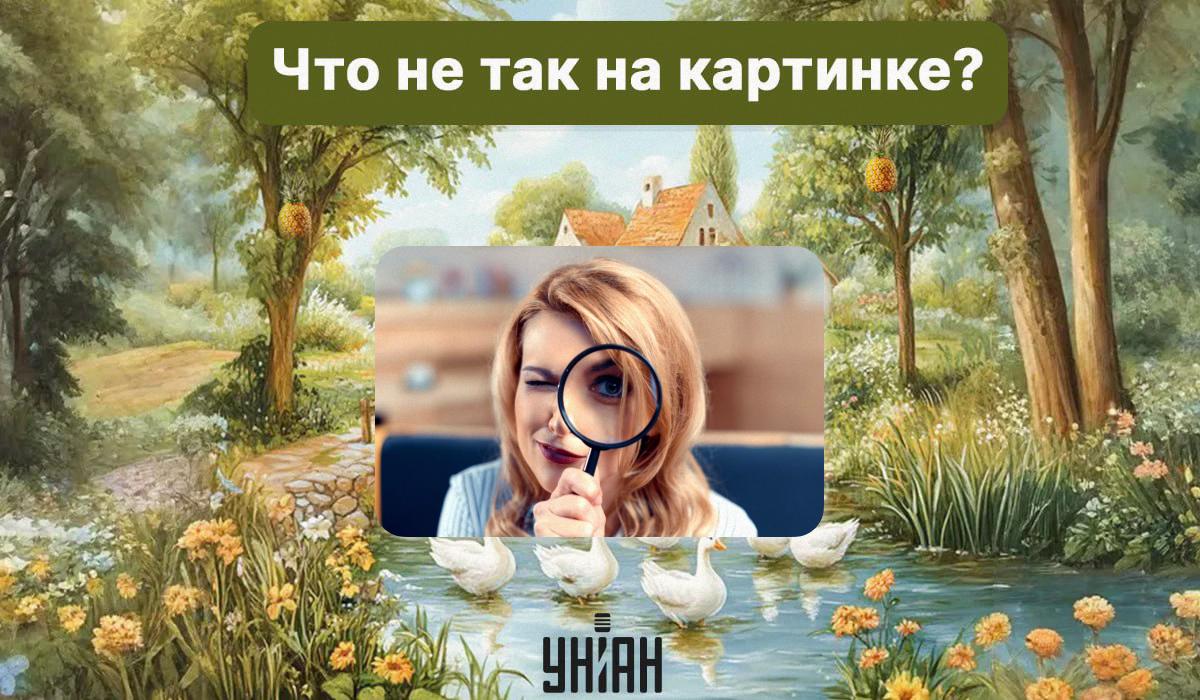 Az alábbiakban egy képet láthatsz, amelyen egy ház, fák és egy tó látható. Úgy tűnik, hogy ez egy csodálatos hangulatú, érdekes ötlet a tájtervezéshez. De valami ezen a képen nem így van. És a feladatod az, hogy megállapítsd, mi az.